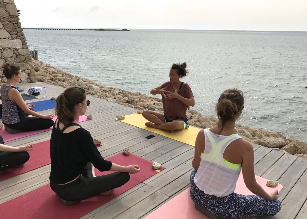 Quand j’habitais au Maroc, j’allais souvent à Dakhla avec les amis pour faire du kitesurf. Dès que j’ai commencé à donner des cours de yoga, j’ai eu envie de mélanger mes 2 passions.