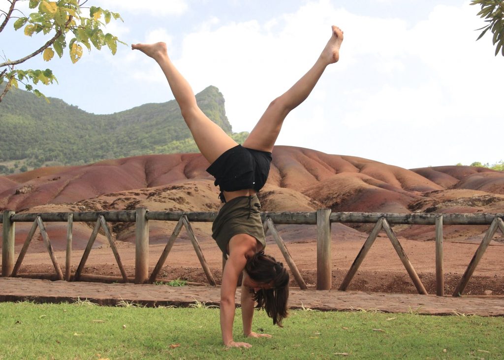 J’ai un petit faible pour les arm-balances et les inversions qui me rappellent mes cours de Hip Hop. C’est un moyen de s’exprimer à travers des postures plus fun et de se dépasser en changeant de perspective.