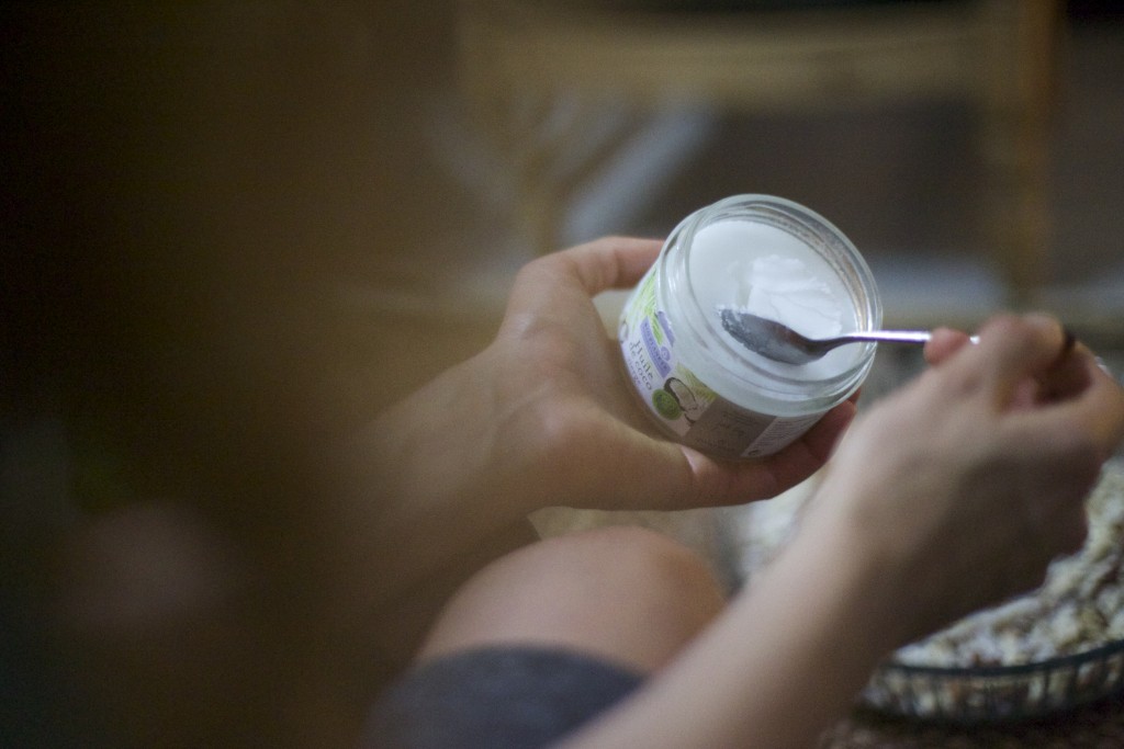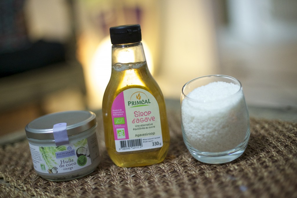 - 4 à 5 cuillères à soupe d’huile ou de beurre de coco