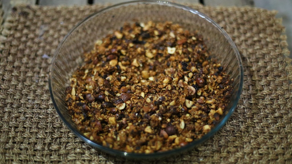 J’ai trouvé l’ensemble des ingrédients chez Bio C Bon. Pour le mélange de noix, j’ai pris un mélange déjà prêt que l’on peut trouver à base d’amandes, de noix de cajou, de noisettes et de raisins secs.