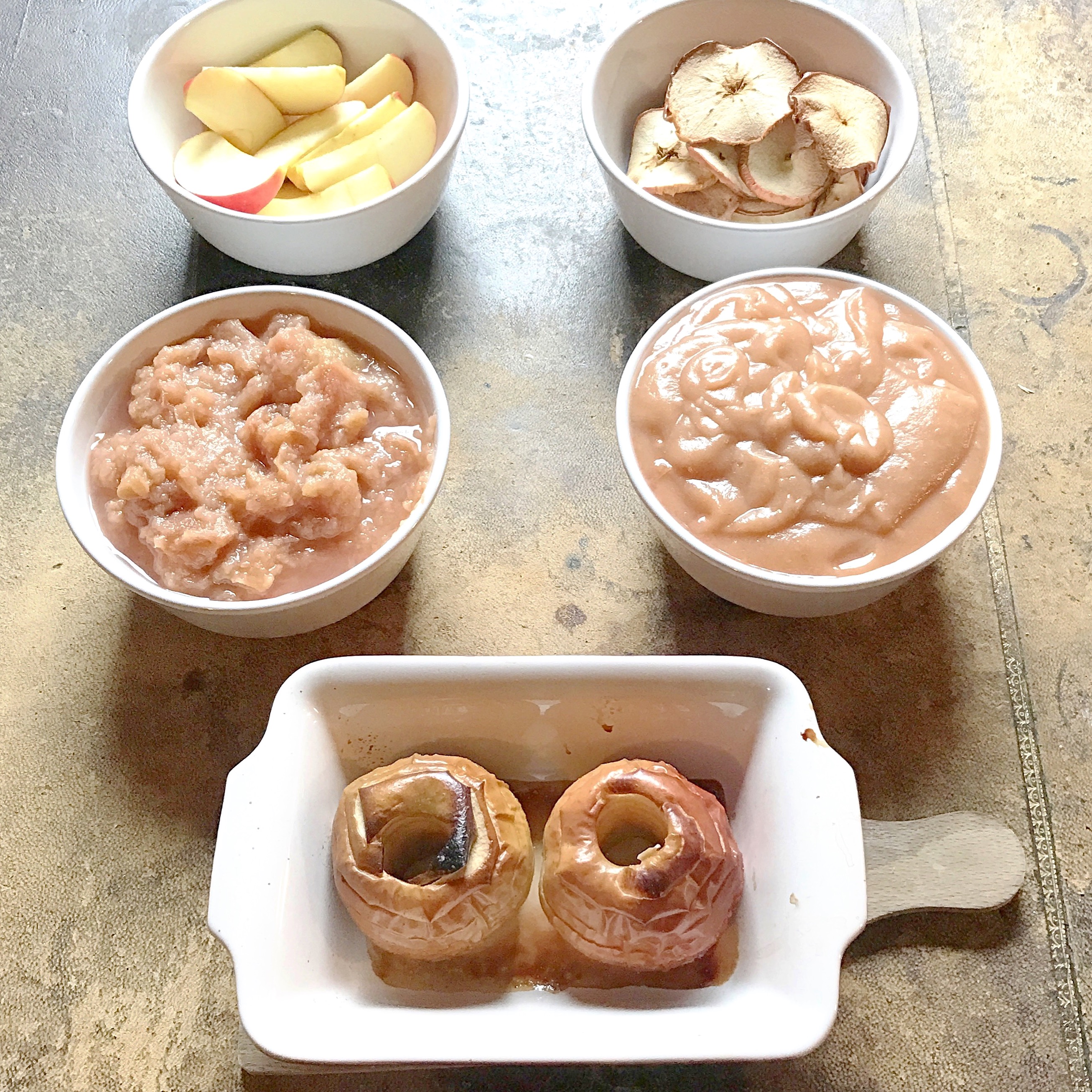 - des pommes au four, très facile : rincez vos pommes, retirez le trognon et placez les dans le four à 100°C pendant 1H30.