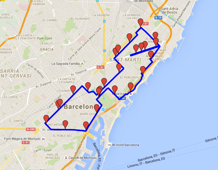 On traverse une grande partie de Barcelone, c’est donc juste génial pour des gens qui ne connaissent pas la ville. On découvre la ville en sillonant à pied les plus grandes avenues qui nous sont juste réservées.