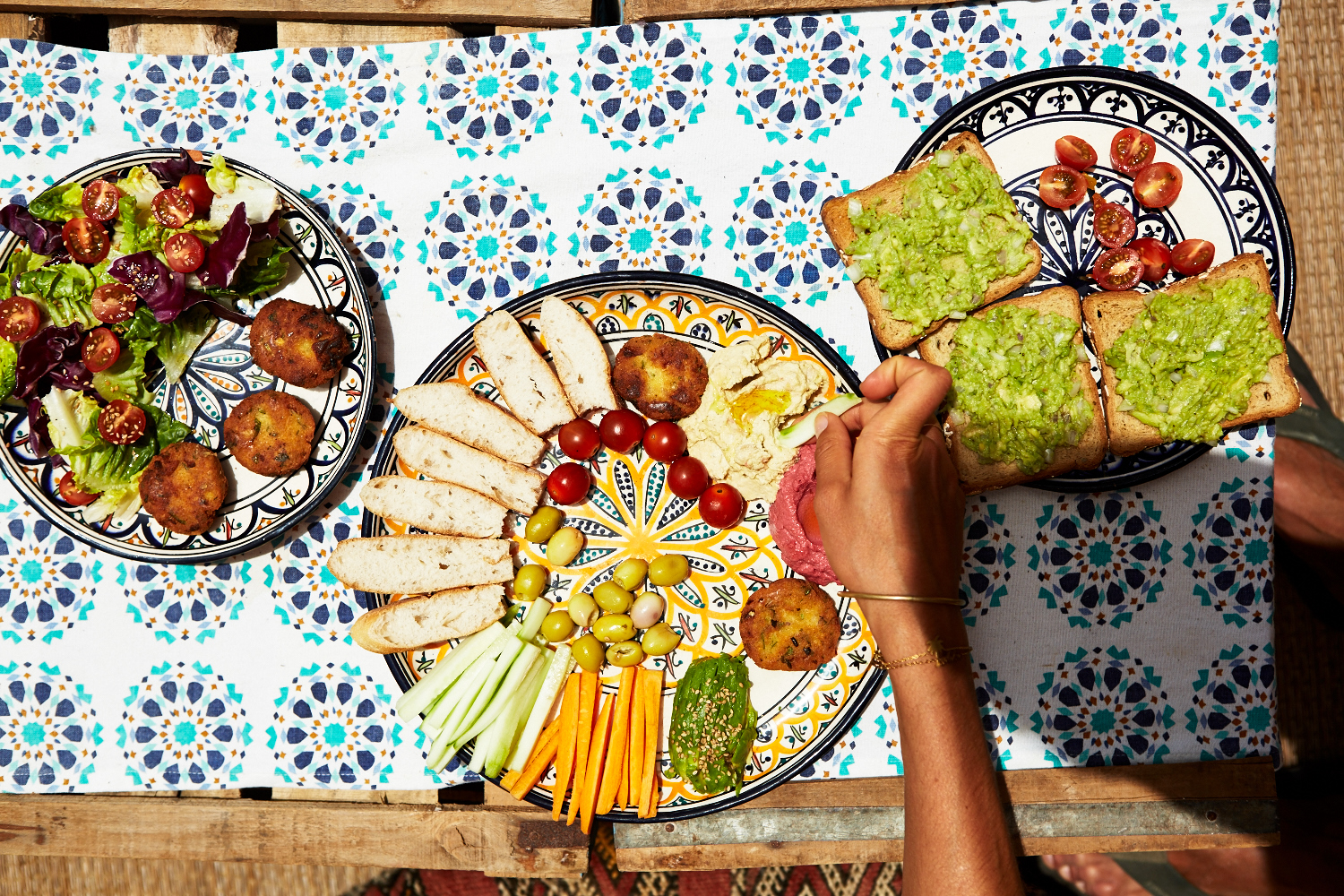 Le midi, vous pouvez soit vous inscrire au repas traditionnel, servi dans le salon, soit manger à l’heure que vous souhaitez en commandant au bar de la surfhouse une de leur assiette de falafels, avocado toasts, spring rolls ou assiette de houmous à la betterave.