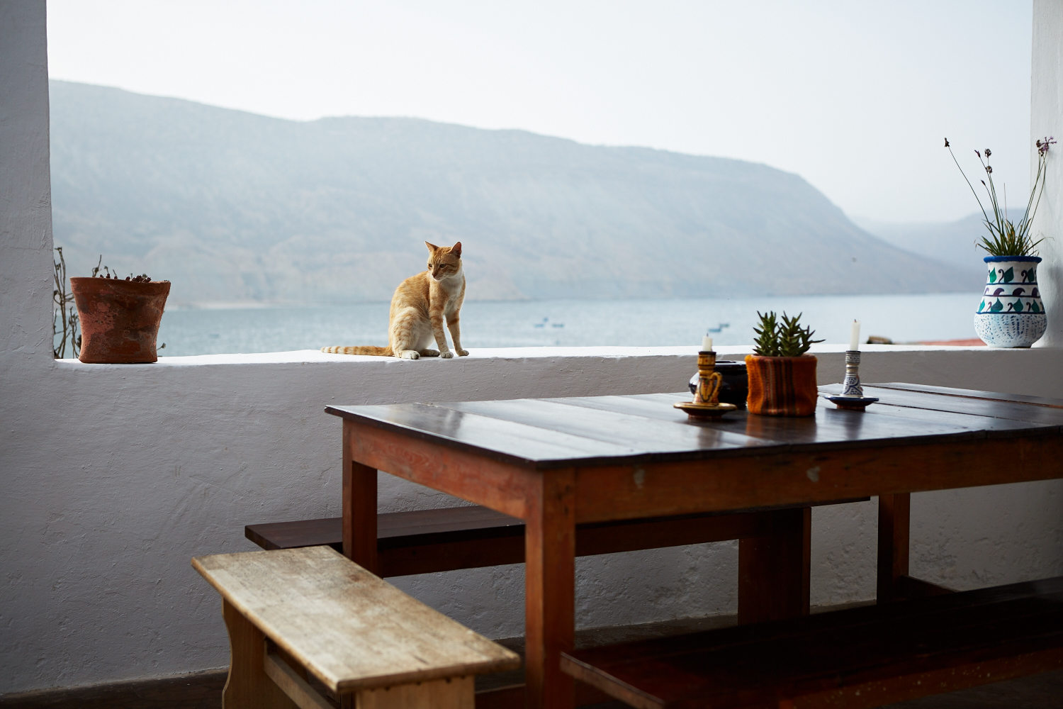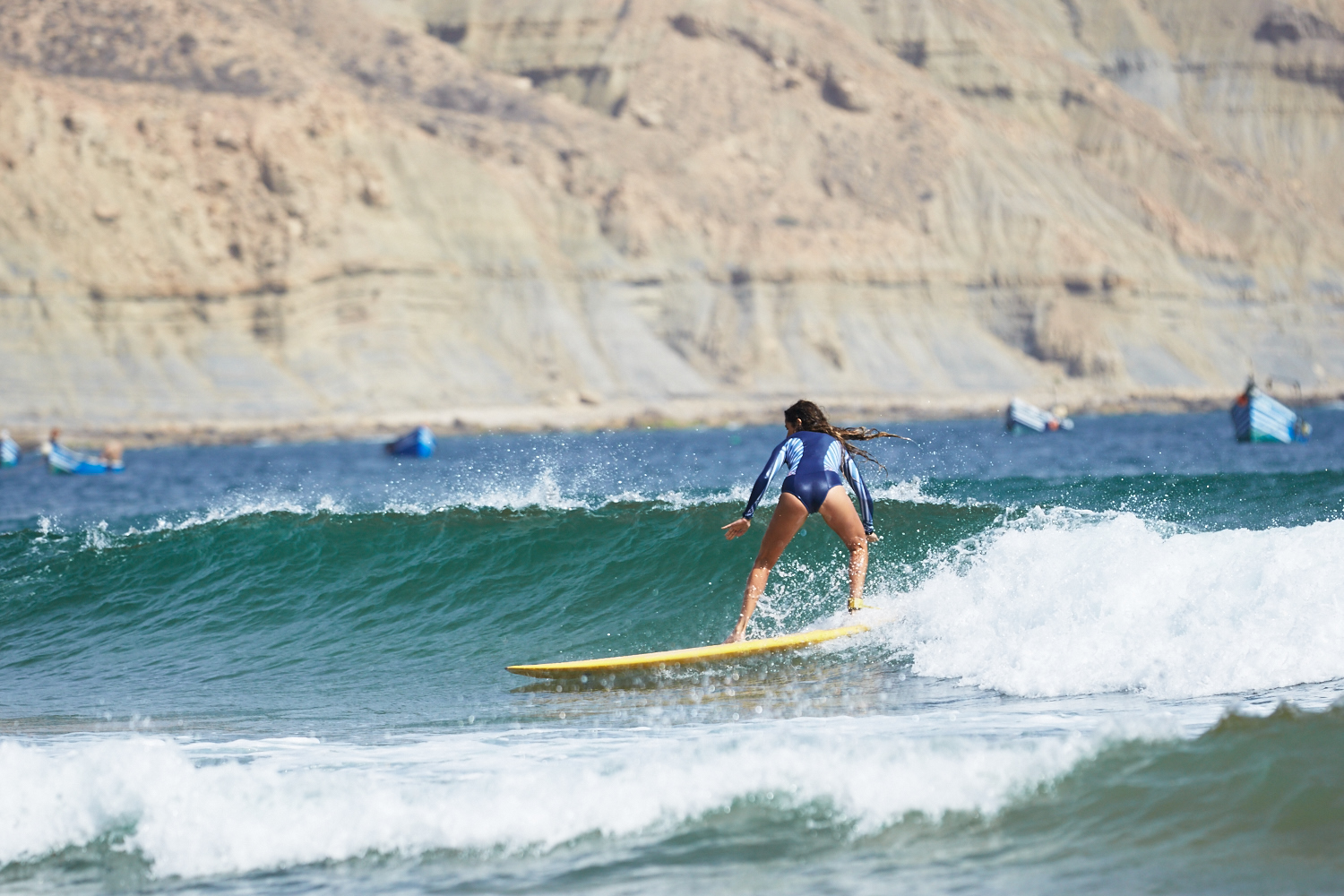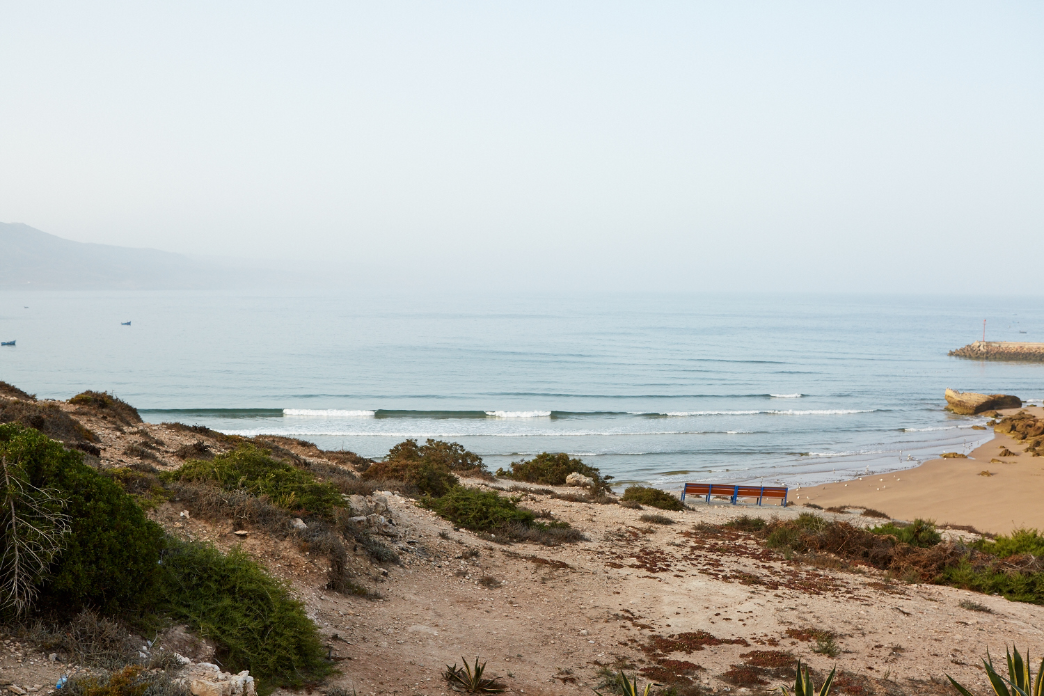 Il n’y a quasiment que des locaux, pas de complexe hôtelier, pas d’attrape-touriste, de gros restaurant, pas de banque, pas de supermarché, pas de caisse de retrait… seulement des petites maisons, des bateaux de pécheurs, la montagne et l’Océan. Le paysage est à couper le souffle entre cette immense montagne désertique, l’eau turquoise et transparente et ces lignes de vagues parfaites qui déferlent doucement sur plusieurs centaines de mètres…