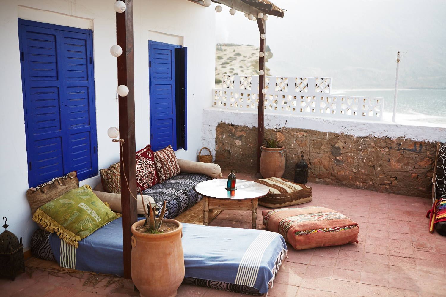 Il y a régulièrement des cours de yoga proposés sur le rooftop de Tayourt mais vous pouvez également faire votre propre flow sur la terrasse de votre chambre face à l’Océan.