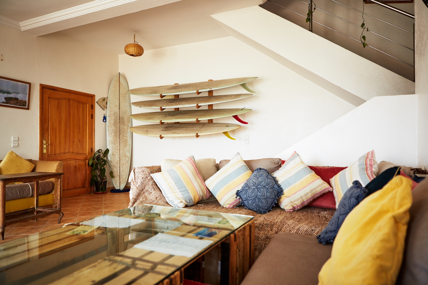 Un des gros avantages (et luxe) de la surfhouse d’Olo Surf est qu’elle est située au pied du spot de surf. On peut même vérifier les conditions de sa chambre ou de sa table de petit déjeuner !