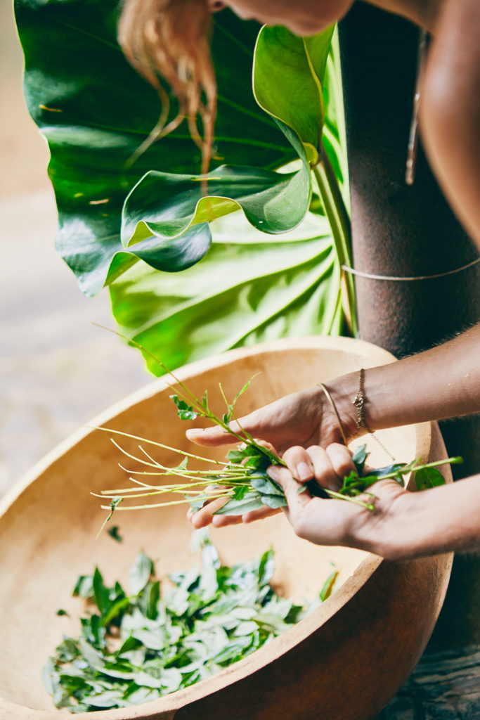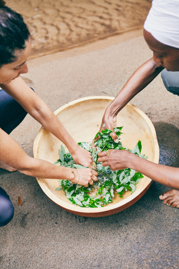 Après la séance, nous avons donc préparé le bain, en broyant avec nos mains les feuilles de glycéria. Dés le début de ce process, Sylvia m’explique qu’il faut que je porte une attention en préparant ce bain.