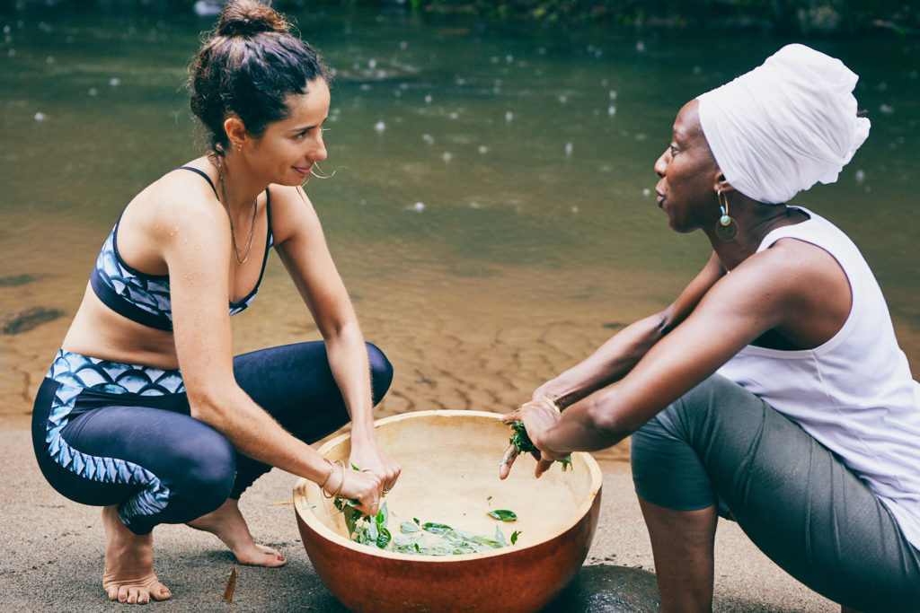 « Quand on arrive là, la première chose qui capte notre attention est le ruissellement de l’eau, le chant de la rivière. L’eau nettoie, purifie, clarifie, notre corps physique mais également le mental. C’est la raison pour laquelle j’associe autant que possible les pratiques de bien-être holistique à la pratique corporelle du Yoga, avec des bains de plantes et autres rituels. »