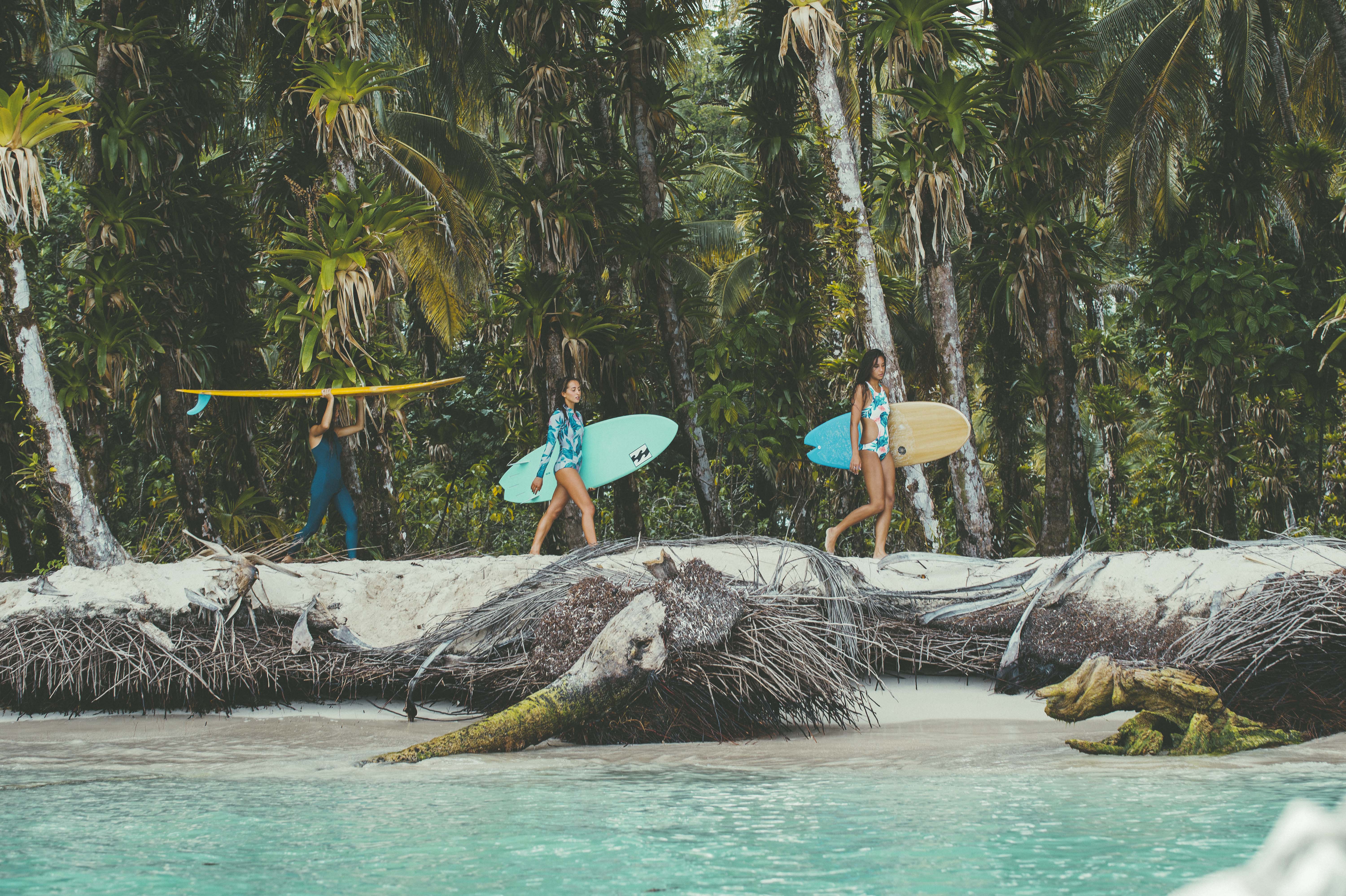 En tout cas, ça nous donne envie d’être déjà en été sur une plage de sable blanc, les pieds dans l’eau, la board sous le bras, prête à filer dans l’eau avec ses copines… Vivement !