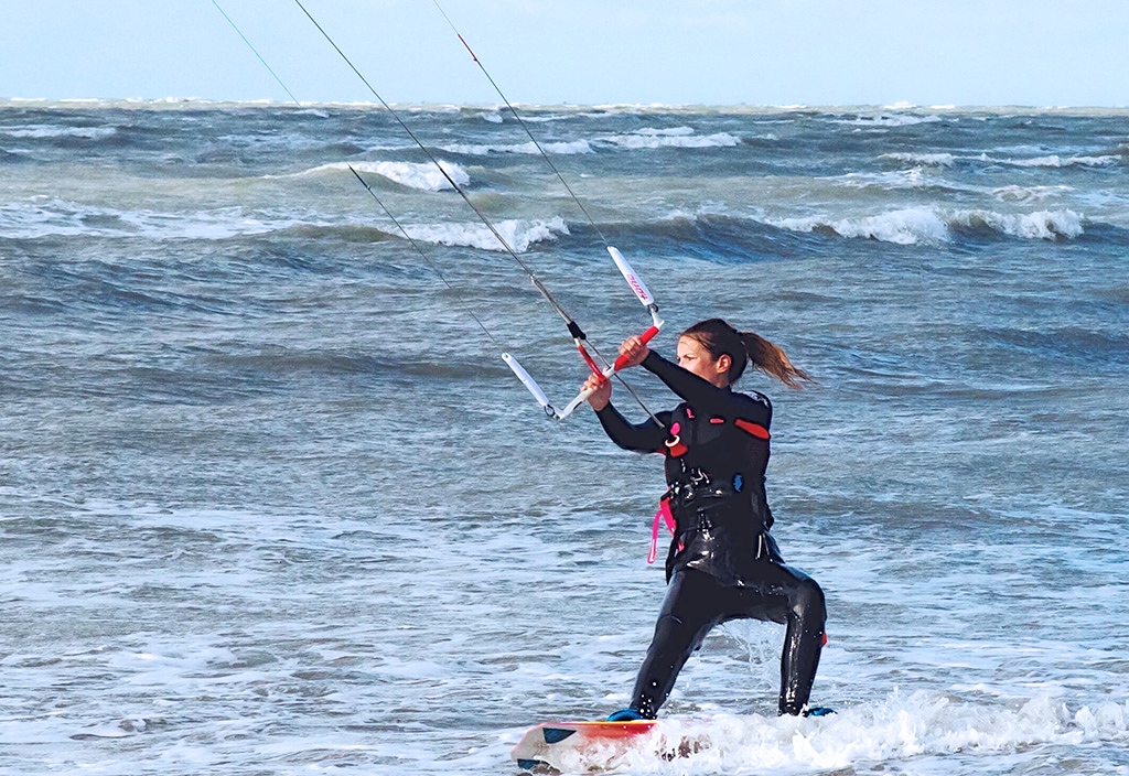 J’ai eu un vrai coup coeur pour le kite que je pratique très régulièrement depuis.