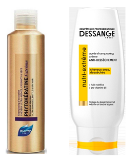 Mes produits chouchoux : le shampoing et après-shampoing Jacques Dessange Nutri-Extrême pour son efficacité et aussi pour son parfum – le shampoing Phytokératine Extreme qui hydrate et répare en profondeur mais dont la texture convient moins bien à des cheveux très épais car le produit s’applique plus difficilement.
