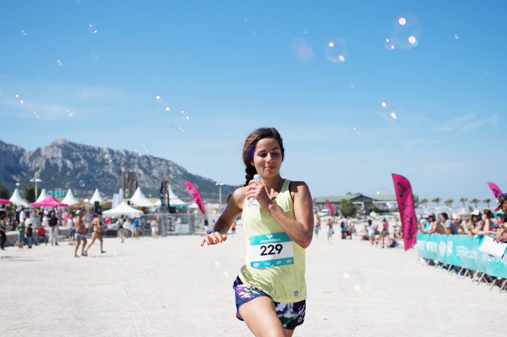 - Une course de 6km le long de la plage. Bien que 6km soit une petite distance, la course n’est pas si simple. Il faisait très chaud et on a des passages sur du sable ou de la terre battue. Malgré les festivités du weekend et la chaleur, je suis super contente car j’ai réussi à finir 6ème ! Les encouragements d’Anne-Flore Marxer ont été efficaces 😉