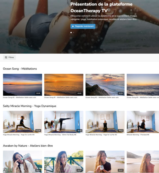 Ma plateforme OceantherapyTV.com avec mes cours en replay Mes séjours bien-être salés OceanTherapy