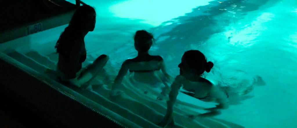 Après 30 mn de running, c’était cours intensif de HIIT dehors devant le fameux bassin d’été de la Piscine qui nous offre en cette fin d’après-midi une vue magnifique, avec un jeu d’éclairage dans la piscine.
