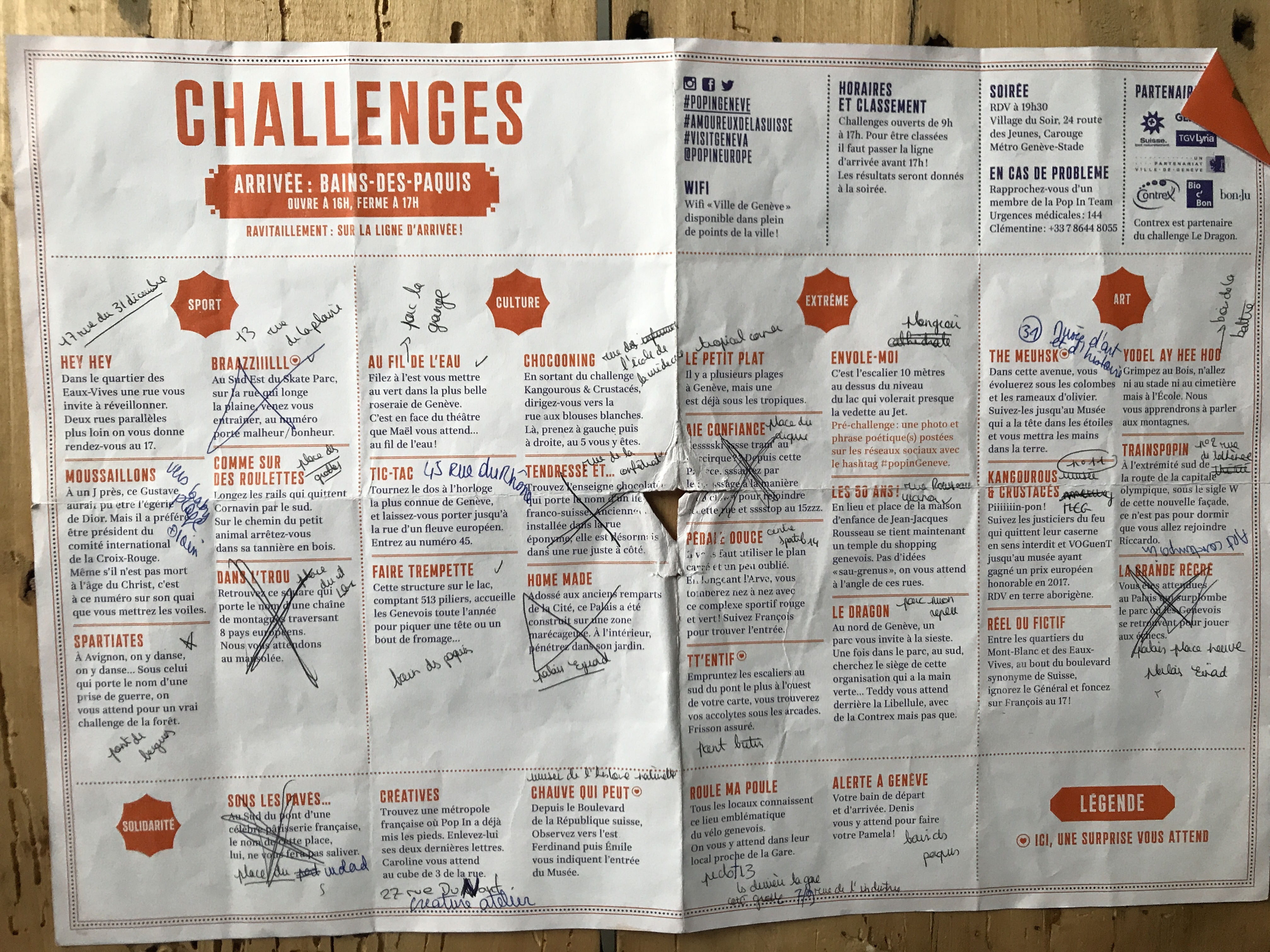 Après 30 000 pas dans tout Genève, nous avons réussi à clôturer notre PopInTheCity avec 13 défis relevés ! On est trop contente même si on est épuisée. On n’a presque pas mangé car nous étions trop occupées à vouloir tout faire mais on se rattrapera ce soir.