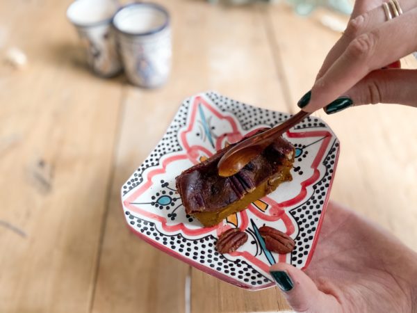 On s’est lancé le défi de réaliser cette recette qui devait être une Pumpkin pie, puis qui s’est transformée en Pumkin cake. Et oui, elle est sans pâte, mais n’en reste pas savoureuse 😉