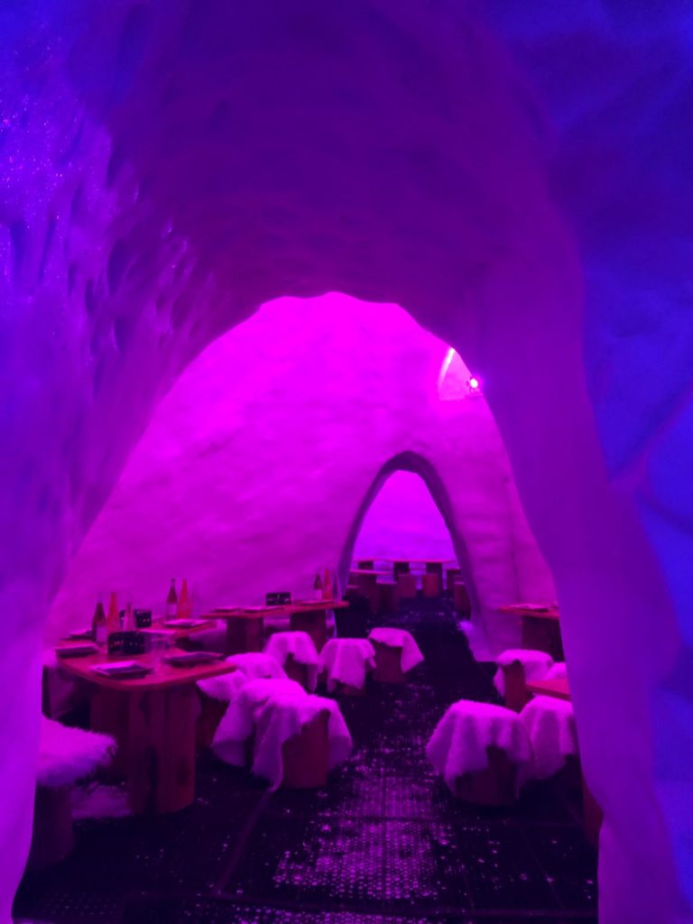 Une autre expérience insolite à absolument faire. L’igloo est impressionnant ! Le lieu est vraiment beau, tout en glace. Il y a un immense bar pour prendre l’apéro, un espace de sculptures de glace et un espace restaurant bien aménagé pour déguster une bonne fondue.