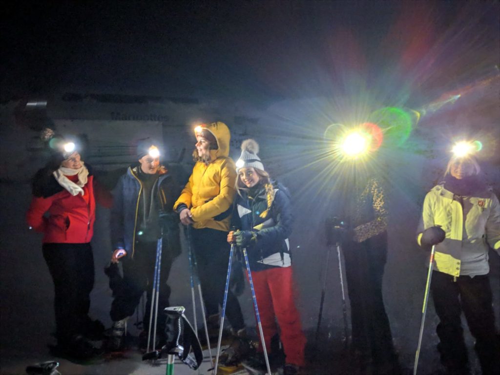 On se sentait si petites au milieu de ses géants de neige. Nous étions seuls , à marcher au milieu des pistes aux pieds des montagnes, éclairées à la lueur des étoiles et de nos frontales. Ce fut un moment magique.