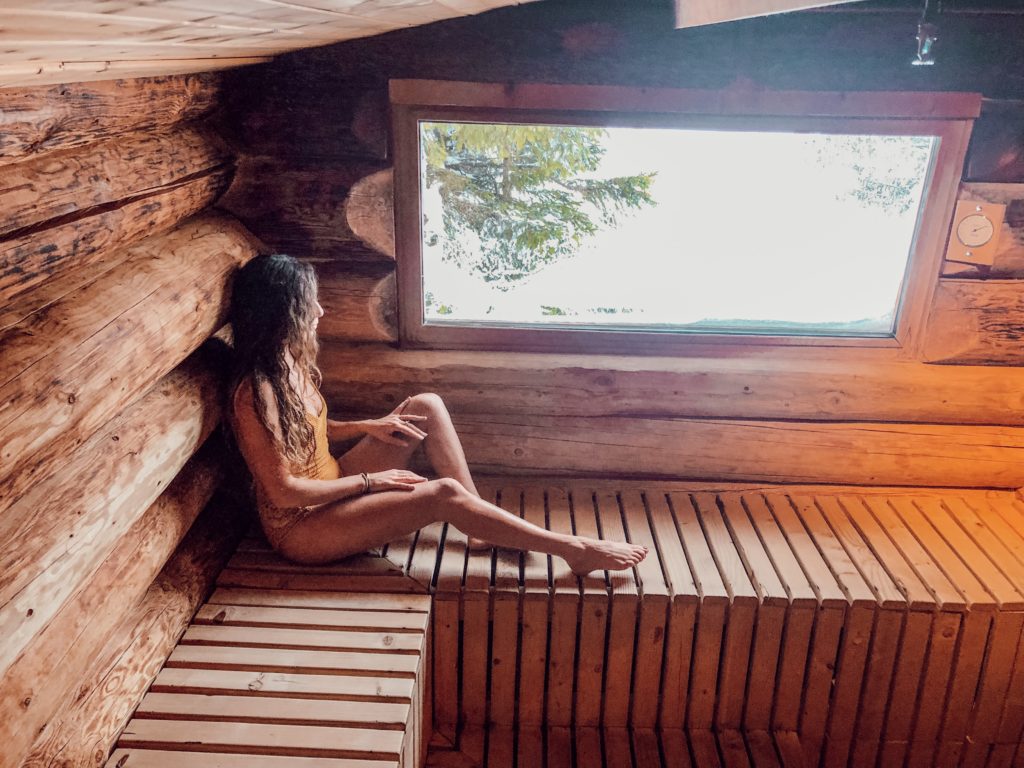J’ai adoré le sauna à l’extérieur avec cette vue sur les montagnes.