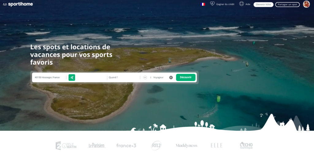 Elle m’a présenté ce concept très cool qui est une nouvelle plate-forme d’hébergements à destination des sportifs. Sportihome répertorie les maisons de particuliers passionnés de sport et habitant près de spots pour pratiquer l’activité concernée (surf, kitesurf, trail, golf…).