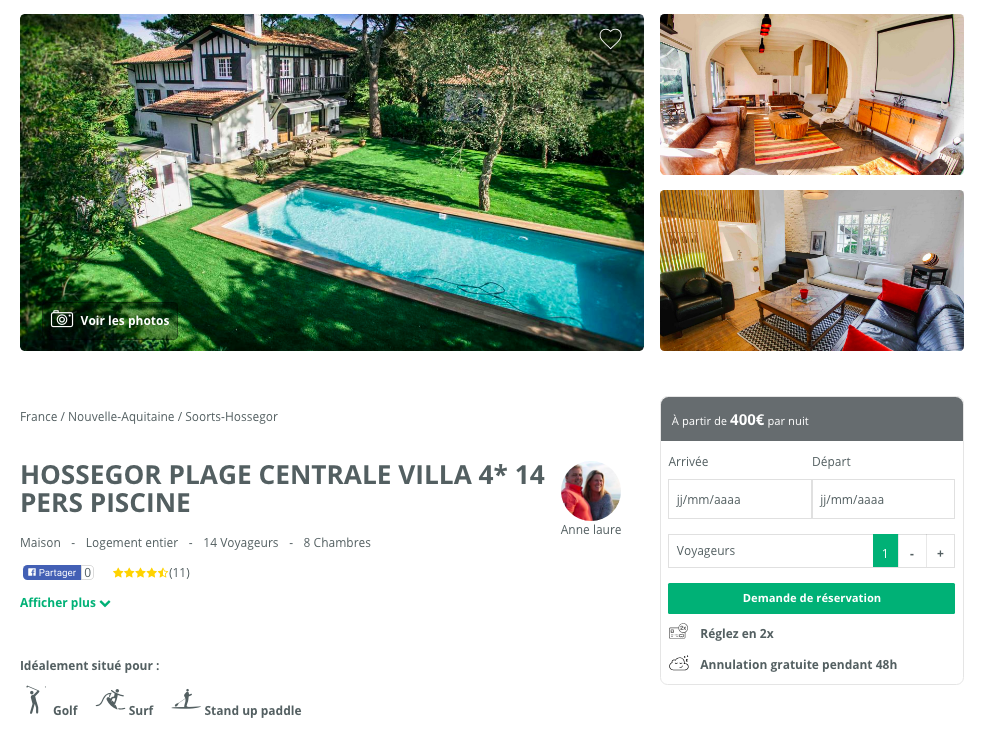 Pour ma part, j’ai entré : « Surf + Hossegor + Logement entier »